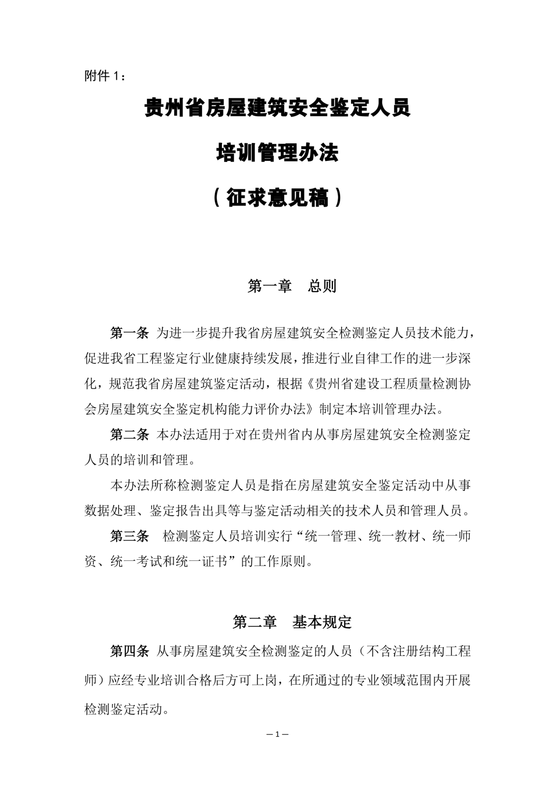 附件1:贵州省房屋建筑安全鉴定人员培训《贵州省房屋建筑安全鉴定人员培训管理办法(征求意见稿)》.docx