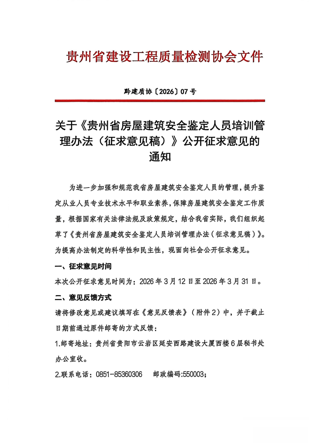 关于《贵州省房屋建筑安全鉴定人员培训管理办法(征求意见稿)》公开征求意见的通知