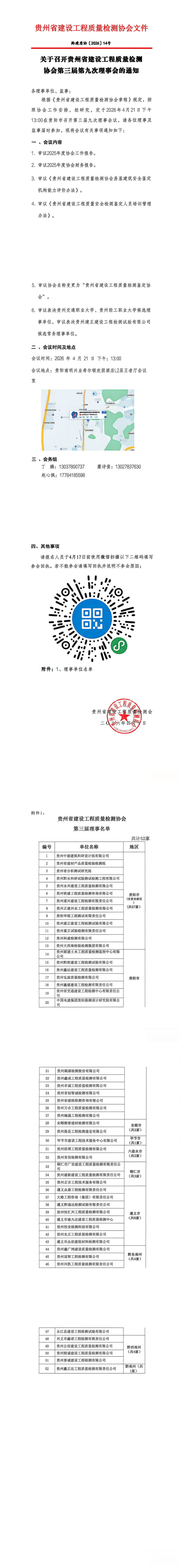 关于召开贵州省建设工程质量检测协会第三届第九次理事会的通知